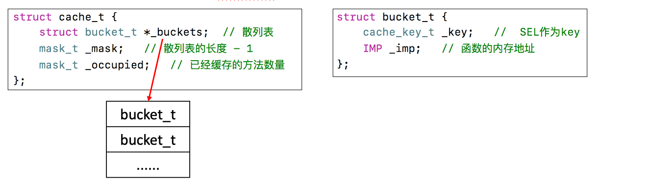 Class内部结构中有个方法缓存(cache_t),用散列表(哈希表)来缓存曾经调用过的方法,可以提高方法的查找速度