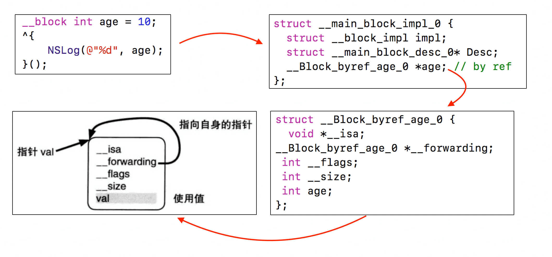 - __block中__forwarding指向