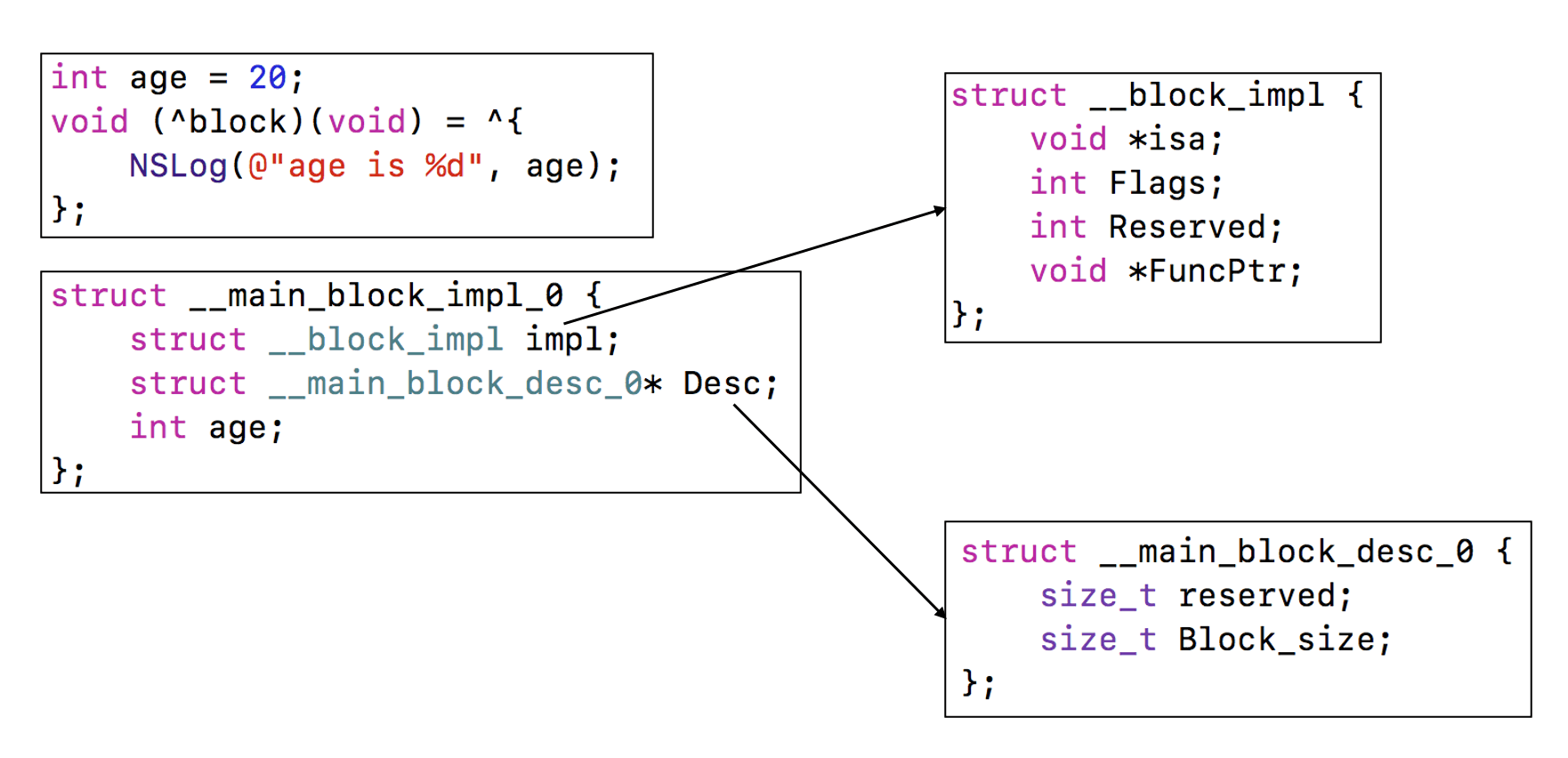 block本质上也是一个OC对象,它内部也有个isa指针