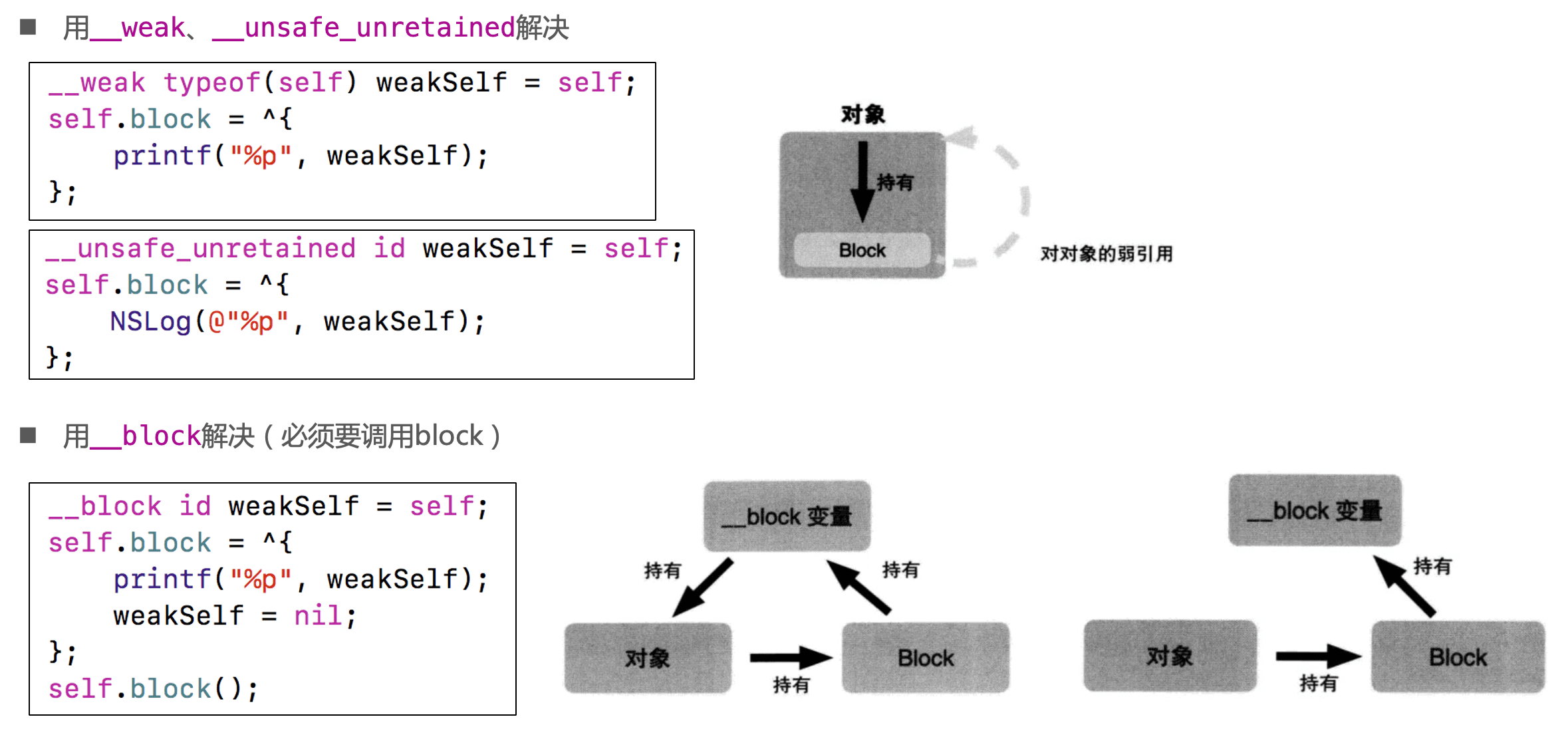 - __block变量对对象的引用和block对auto变量引用是一样的,详见上面对【#对象类型的auto变量】